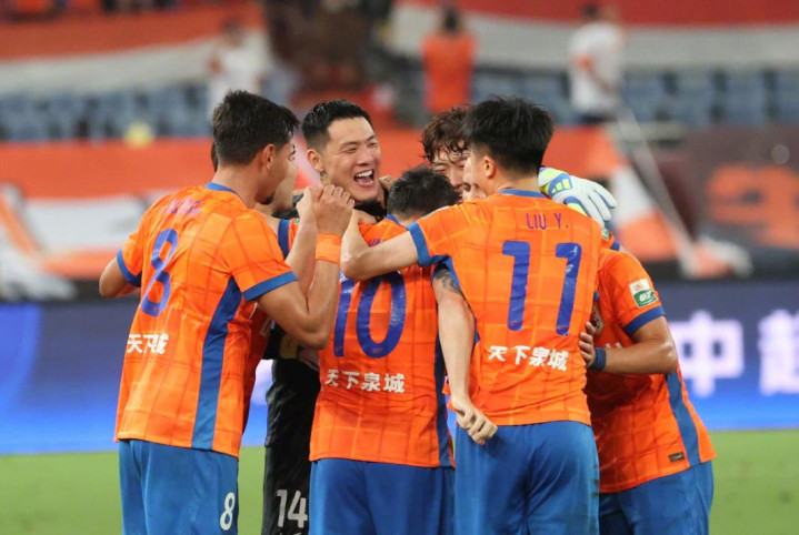 下半场,泰山队继续猛攻,卡扎伊什维利后点头球,皮球高出。第57分钟,泰山队持续施压,颜骏凌完成连续两次扑救,帮助球队保住领先优势。第72分钟,克雷桑小角度定位球直接旋进球门,山东1-1扳平海港。